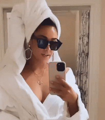 Shay Mitchell – cleavy in a bathrobe